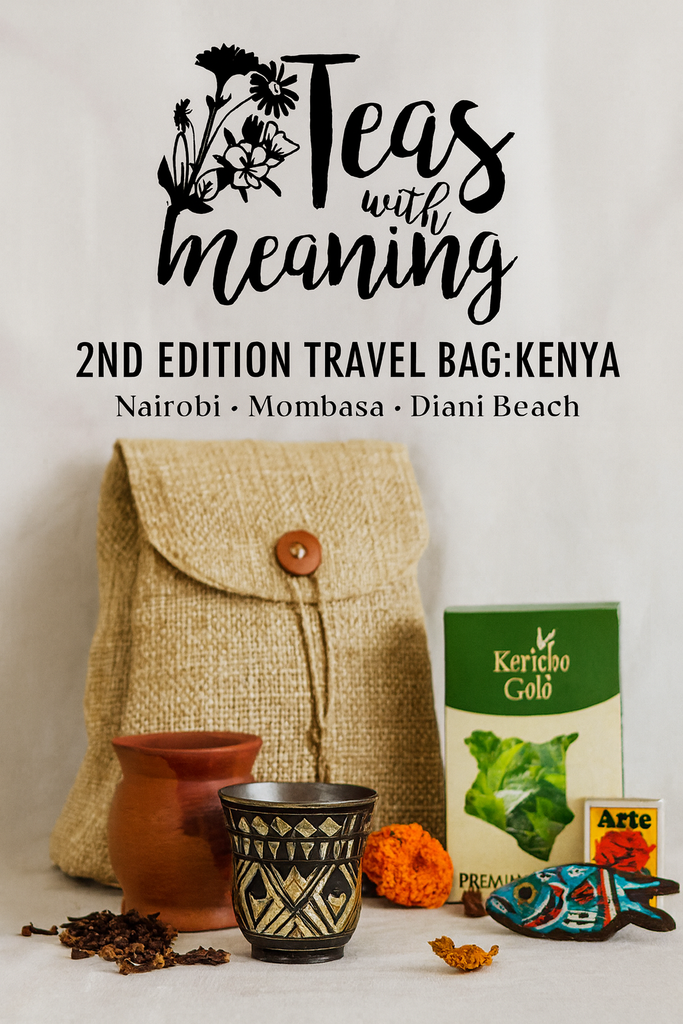 A limited-edition wellness bag curated from Teas With Meaning journey across Kenya: Nairobi, Mt. Kenya, Mombasa and Diani Beach.